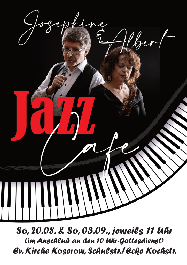 11:00 Uhr: „Jazz-Café mit Josephine & Albert“, je nach Wetterlage an oder in der Kirche